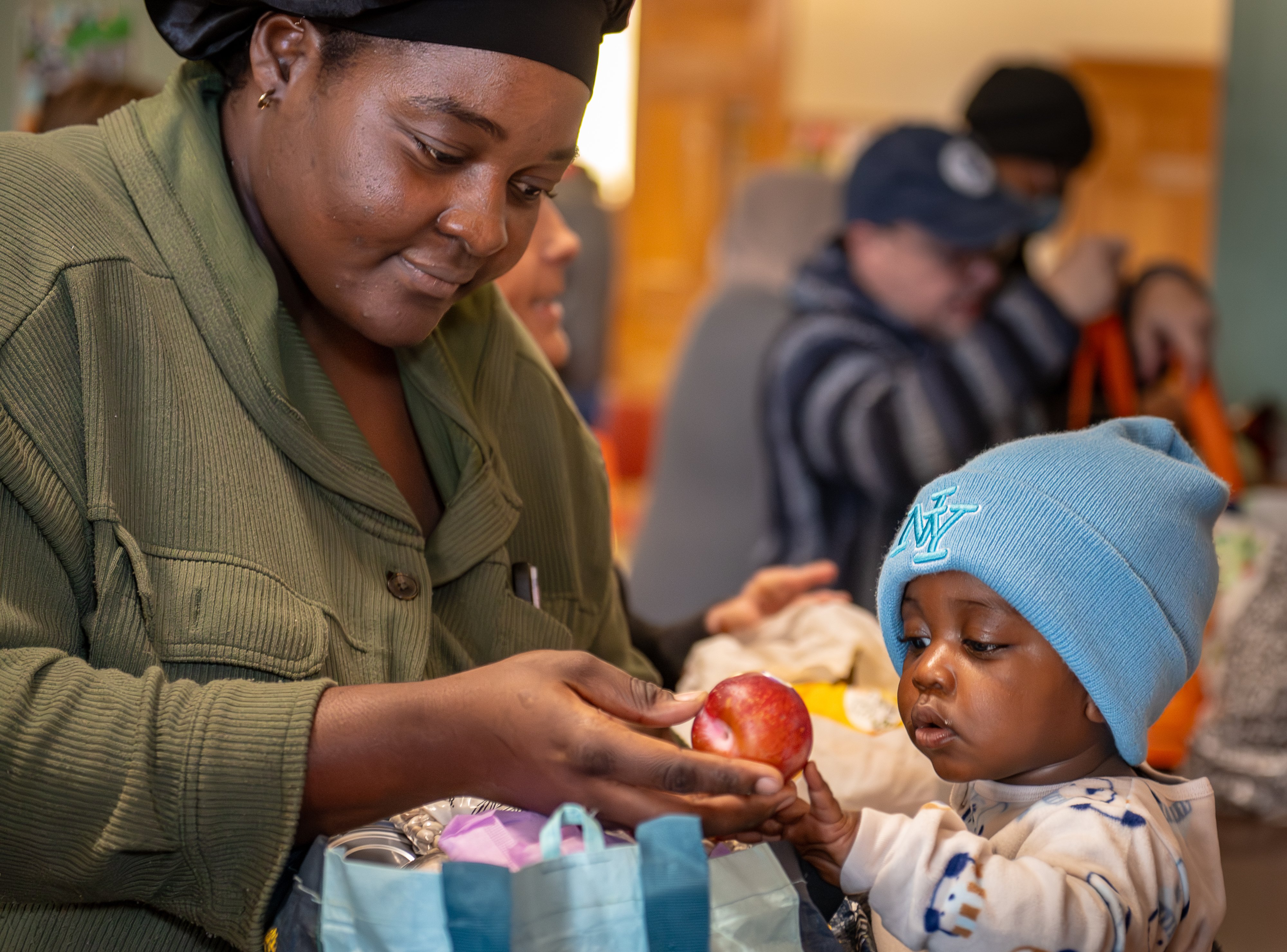 Through the work of dozens of volunteers, every Thursday the church’s food pantry gives out a box of nonperishable food and a box of meat and produce to 65 families, who are allowed to come every three weeks.